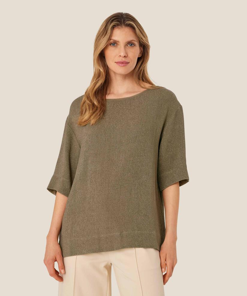 Blander du forskellige teksturer, får du et personligt og stilfuldt udtryk. Denne tidløse bouclétop er perfekt til at bringe tekstur ind i dit outfit. Den har et enkelt design med rund hals, lige linjer og korte slidser i siderne, så den gør sig godt i et lag-på-lag look. Du kan for eksempel style den med en mønstret skjorte eller kjole.