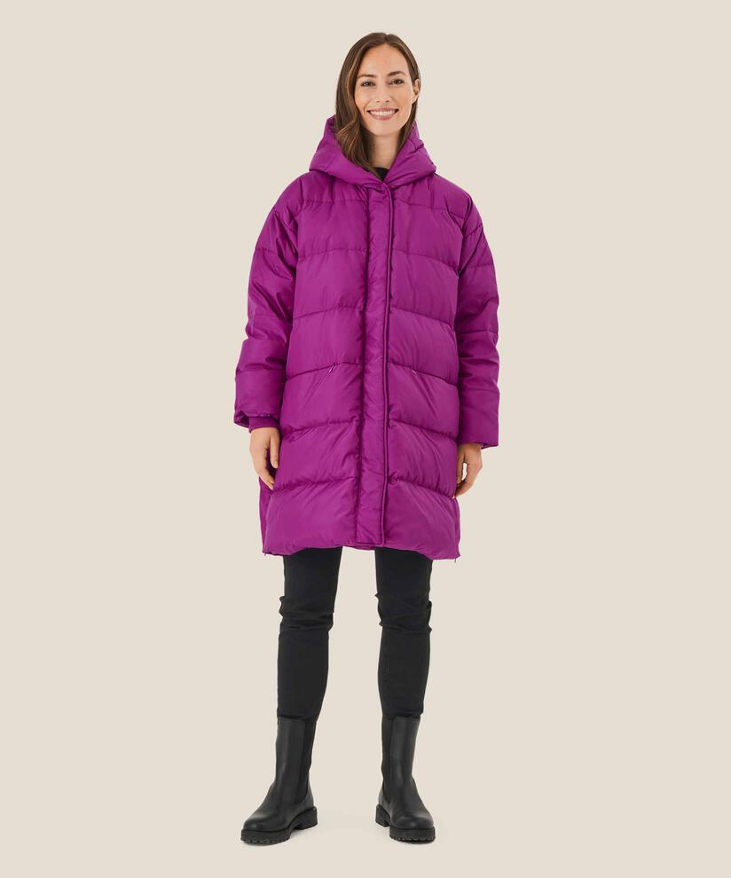 Den er designet med horisontale syninger, der holder dunfyldet på plads og skaber en feminin og smart effekt.