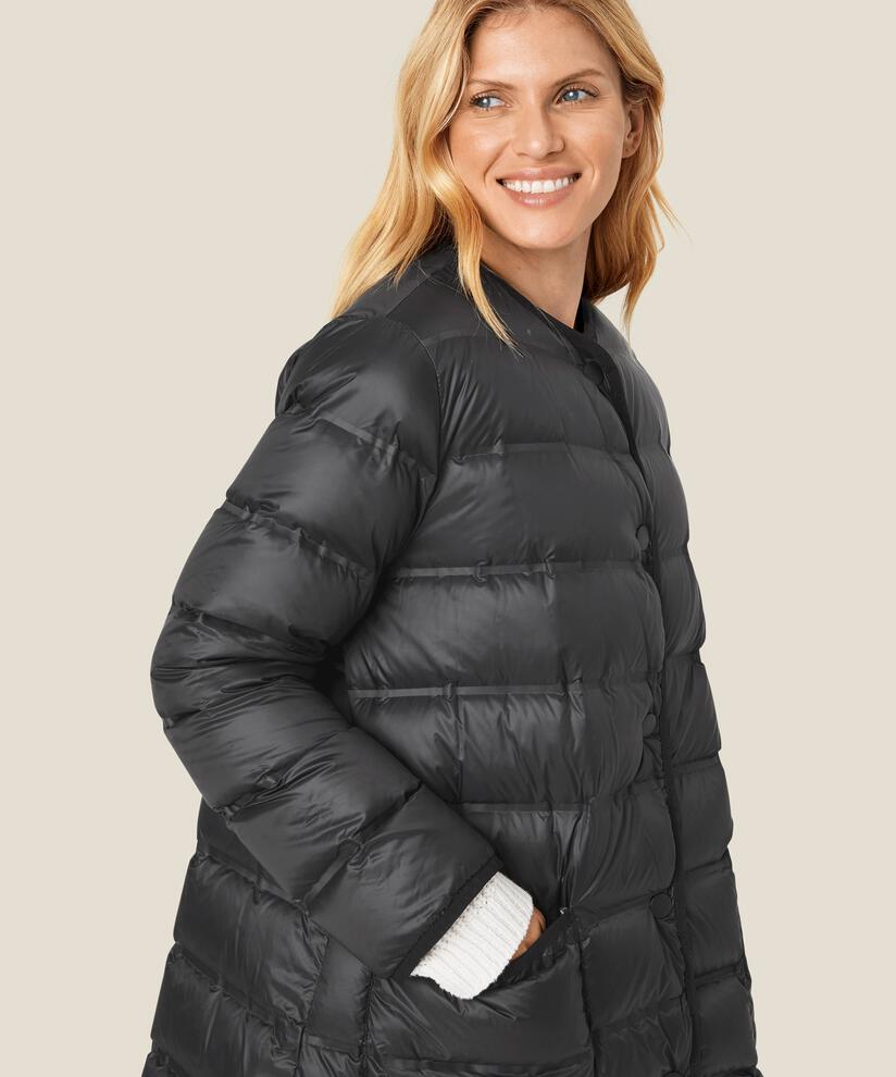 Denne lette dunfrakke er en perfekt overgangsfrakke.