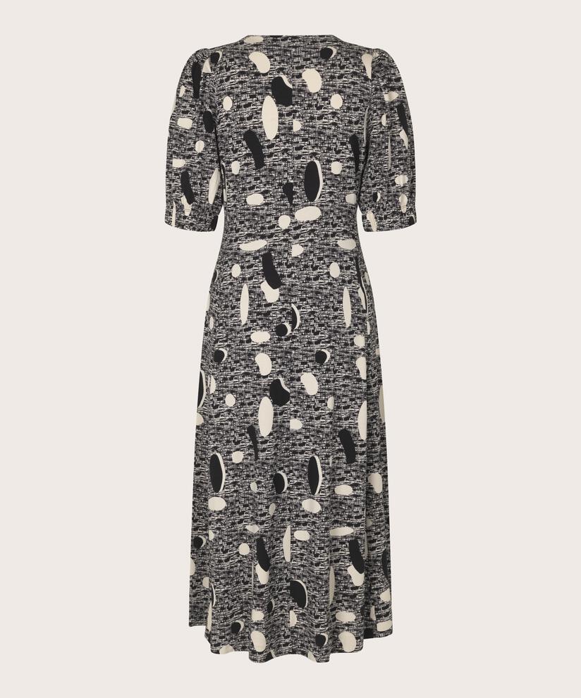 Feminin kjole i en blød og lækker viskosekvalitet med et flatterende figursyet snit. Syningerne i siderne fremhæver taljen, mens kjolen falder blødt og behageligt om kroppen. Bemærk også den flotte struktur på ærmerne.