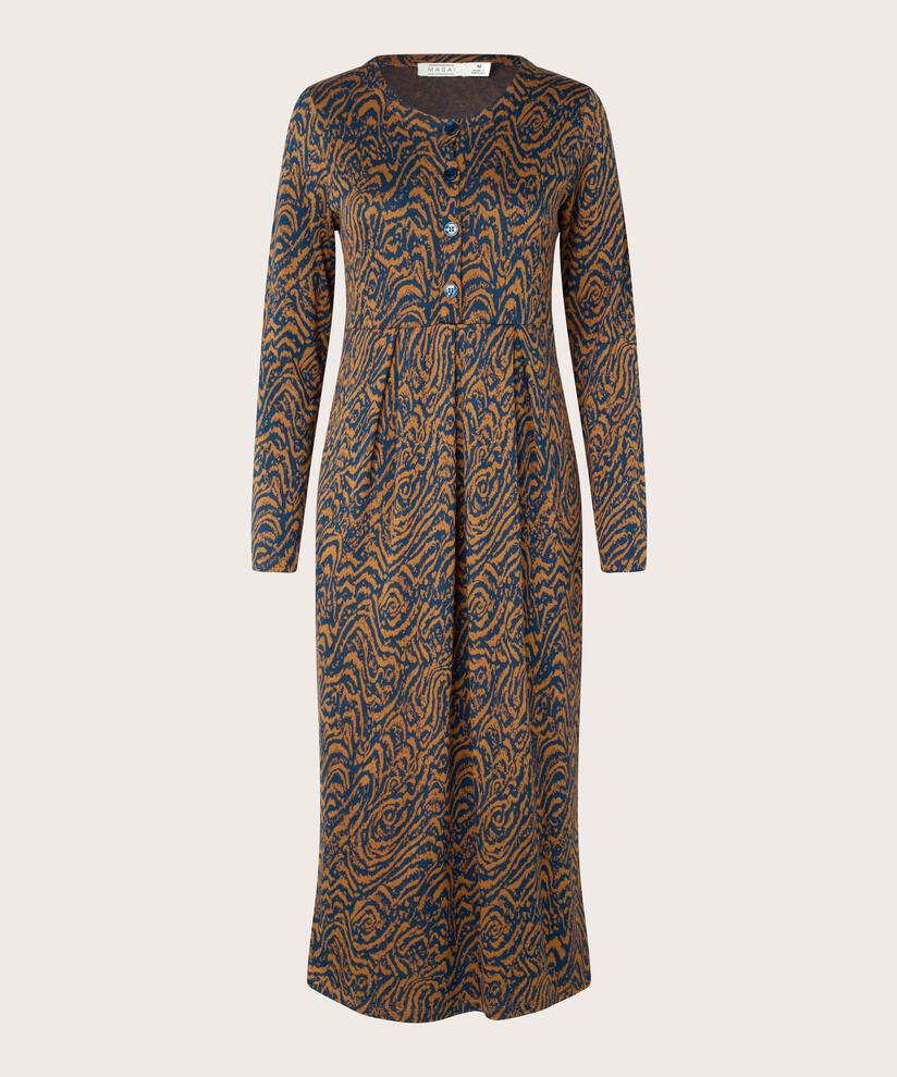 Det er samme eksklusive, bløde jerseykvalitet med smukt print, men denne kjole byder også på rund hals med knapper, der tilfører ekstra kant til dit look.
