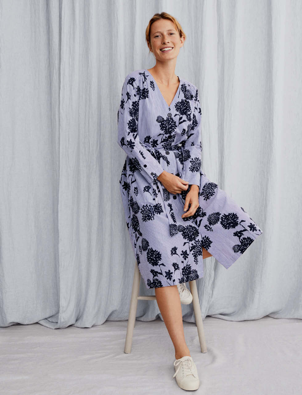 Farven blå er en absolut klassiker. Den er tidløs, alsidig og passer til alt. Farven signalerer ro og harmoni, og endnu bedre: havet. Klæd dig i smukke blå nuancer og kunstneriske prints inspireret af havet: smukt, dragende og altid i bevægelse.
