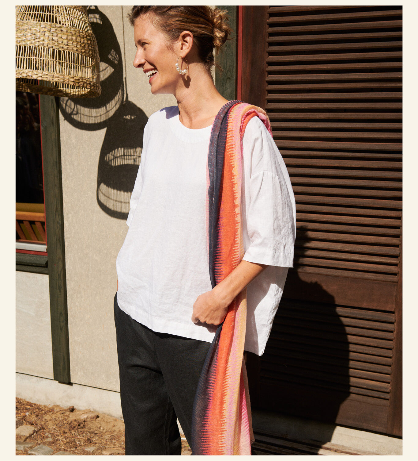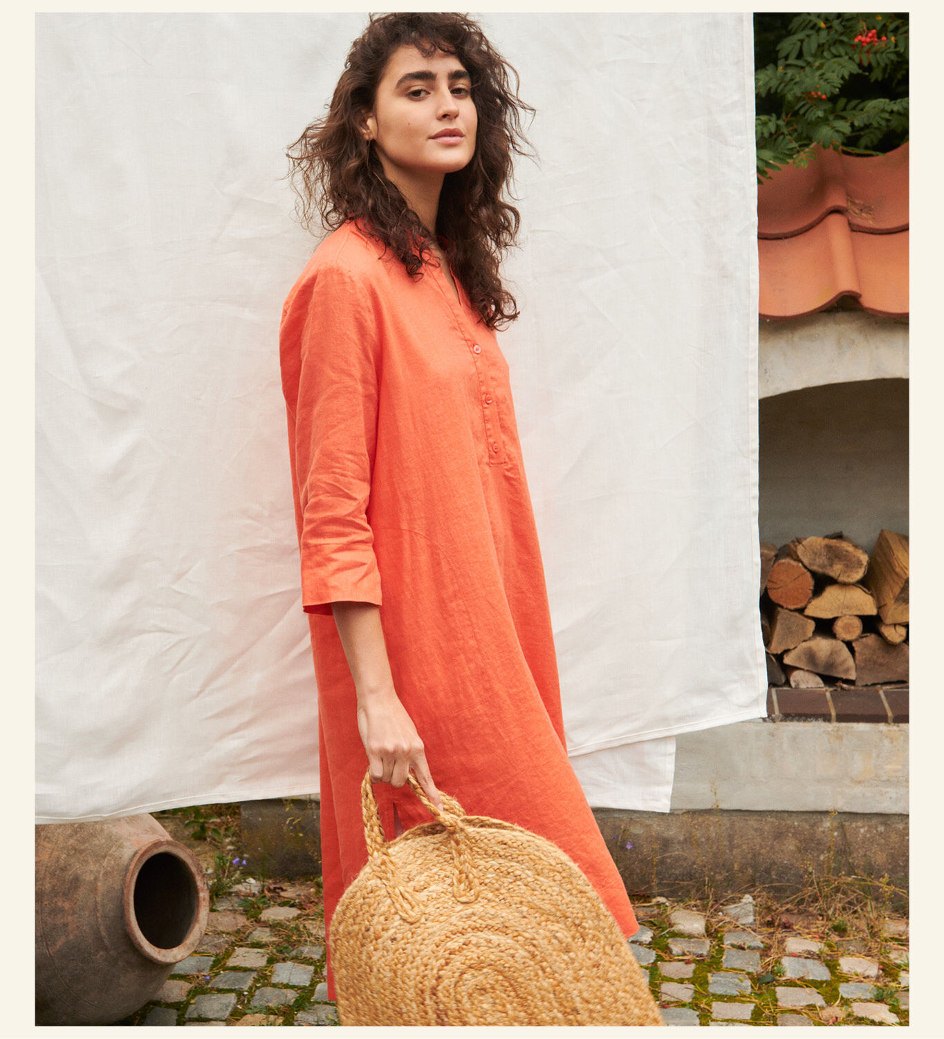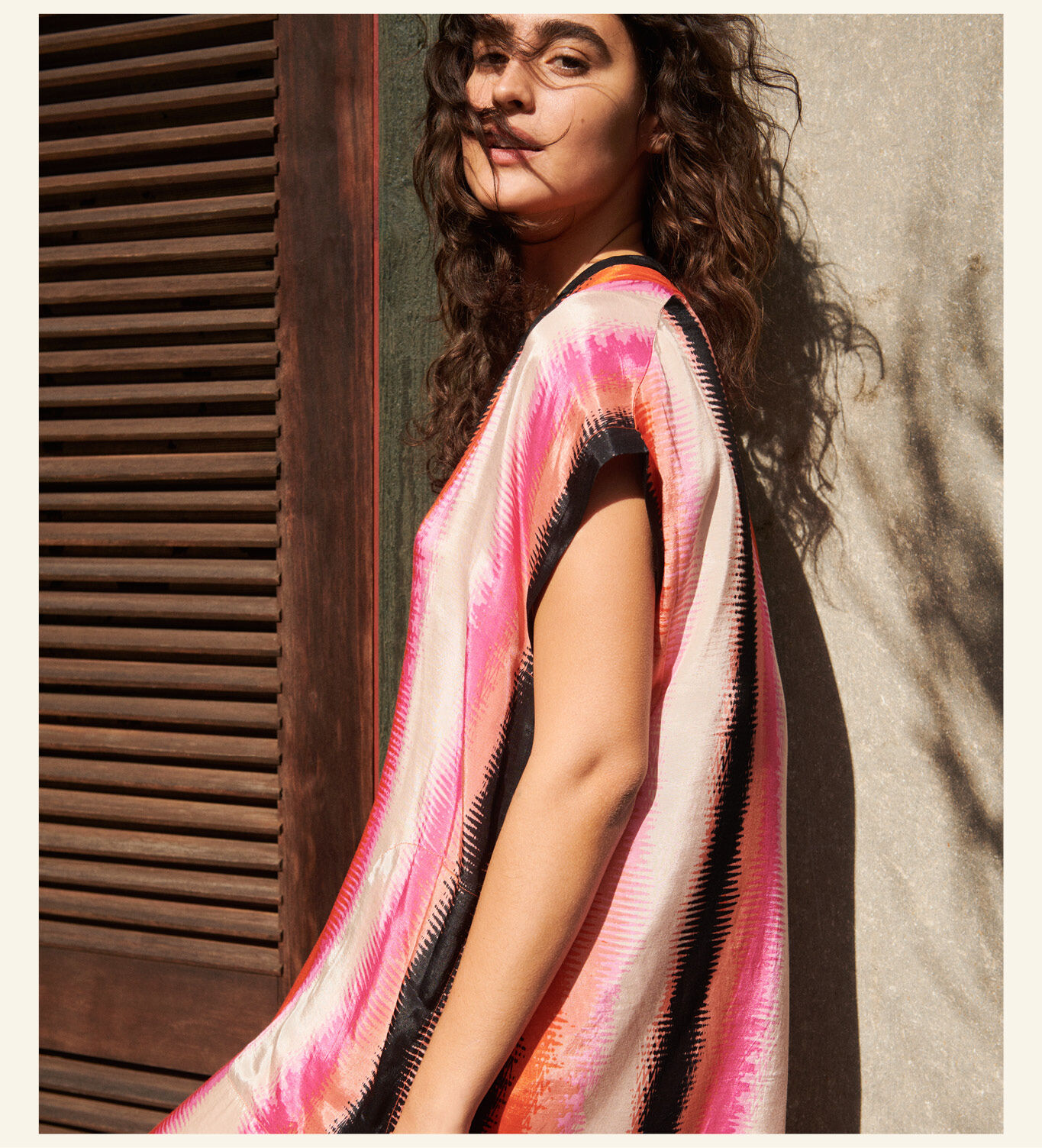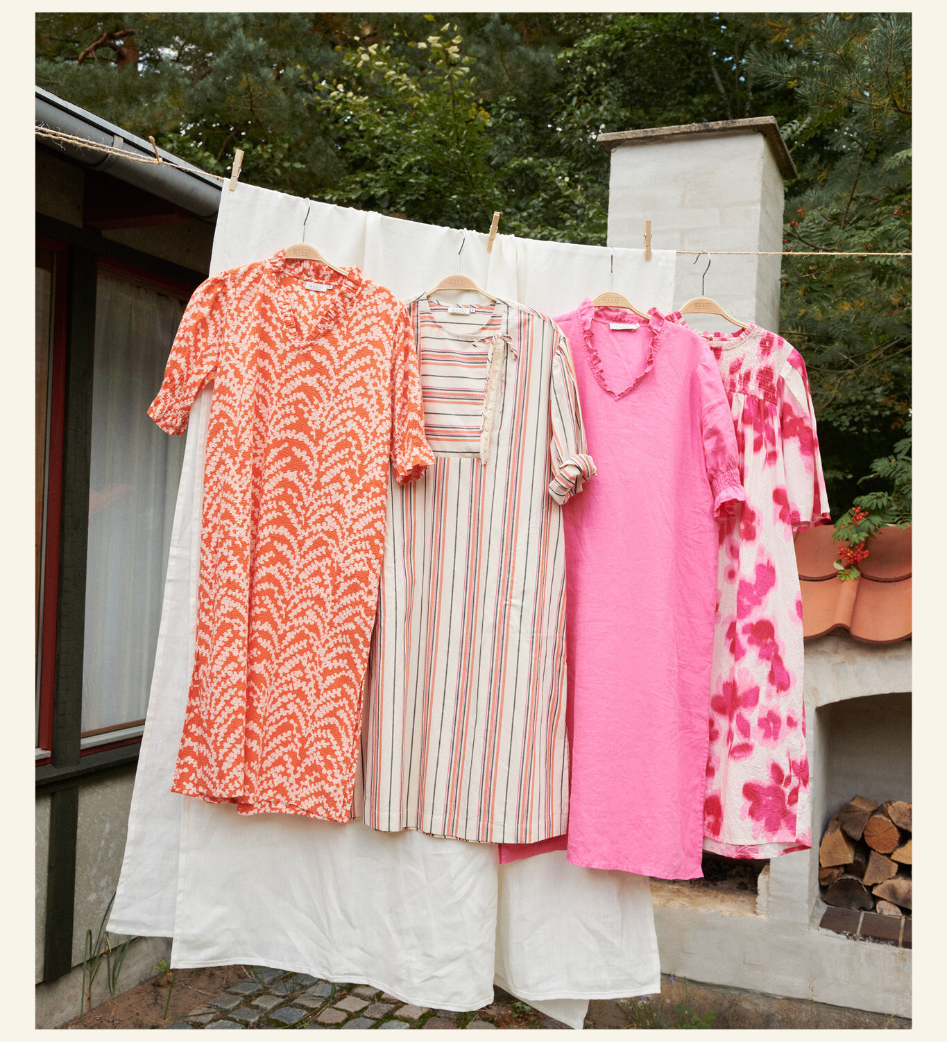 Lad farverne fra varme sommerdage og smukke solnedgange fylde din garderobe med elegante og tidløse styles i varme farver og florlette kvaliteter – perfekt til både hverdag, ferie og fest.