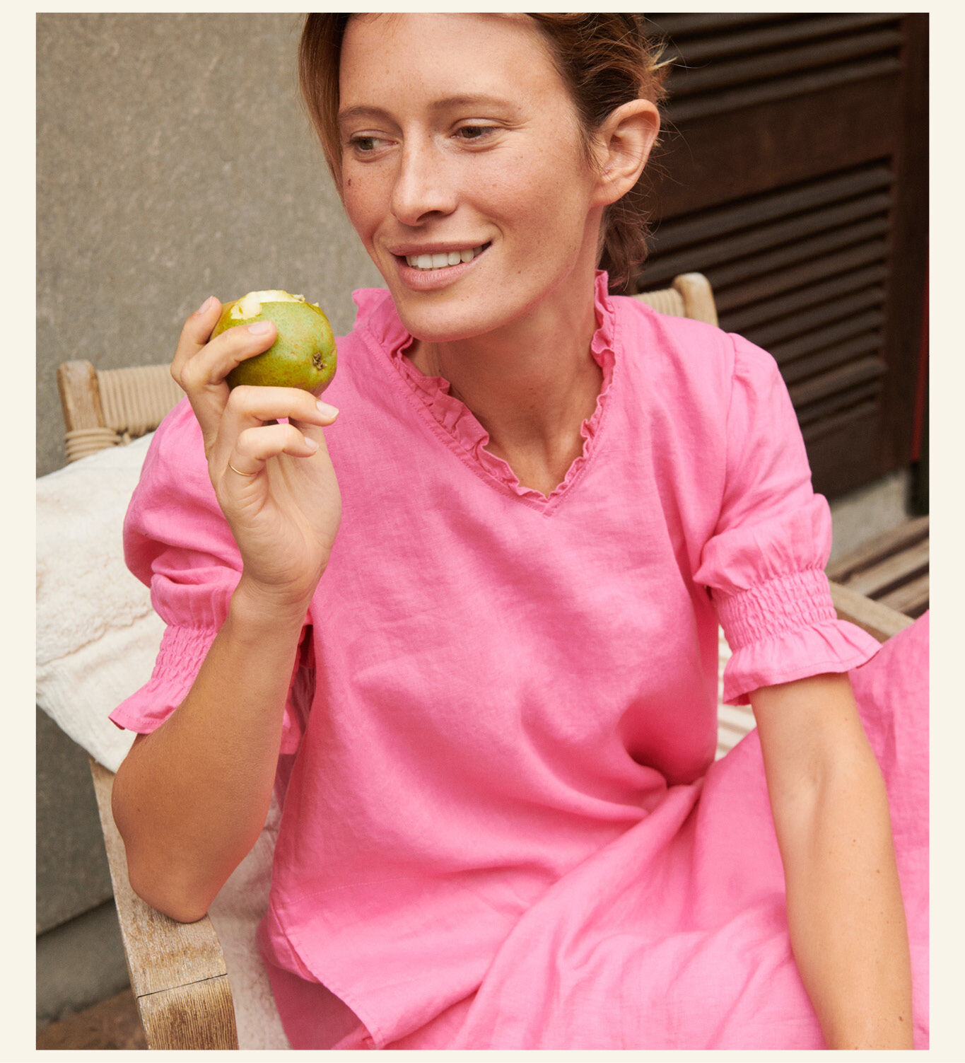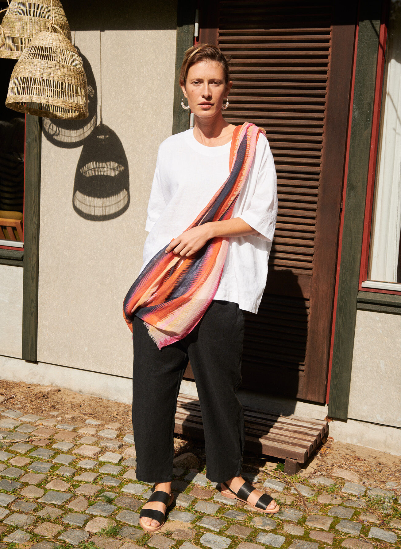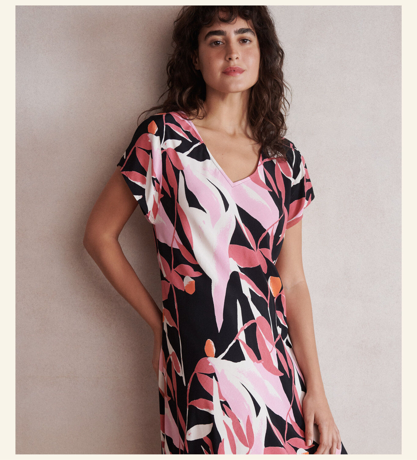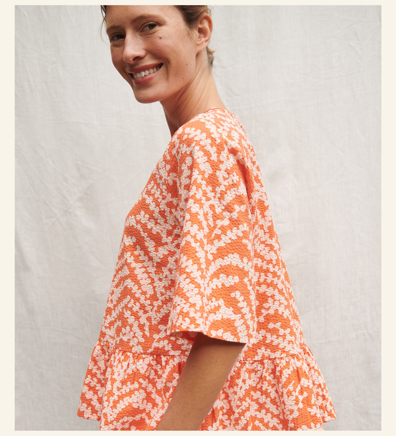Lad farverne fra varme sommerdage og smukke solnedgange fylde din garderobe med elegante og tidløse styles i varme farver og florlette kvaliteter – perfekt til både hverdag, ferie og fest.