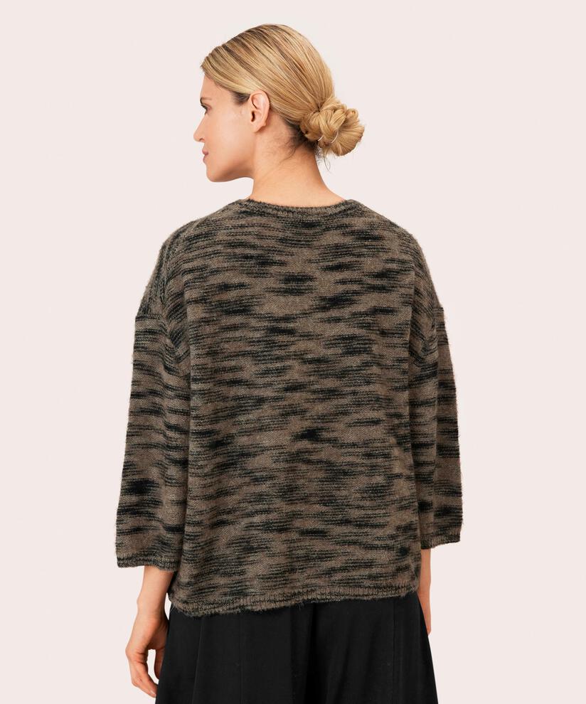 Hos Masai kan vi ikke få nok af bløde, lækre strik. Denne smukke melerede sag er strikket i en eksklusiv kvalitet med uld og alpaka. Den er virkelig skøn og blød. Den er designet i et enkelt look med rund hals, smalle ribkanter og trekvartlange ærmer, så du kan skabe et lækkert lag-på-lag outfit med en langærmet bluse indenunder.