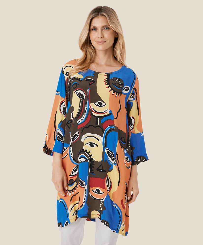Skru op for humøret med denne mønstrede tunika, der er lige til at blive glad i låget af.