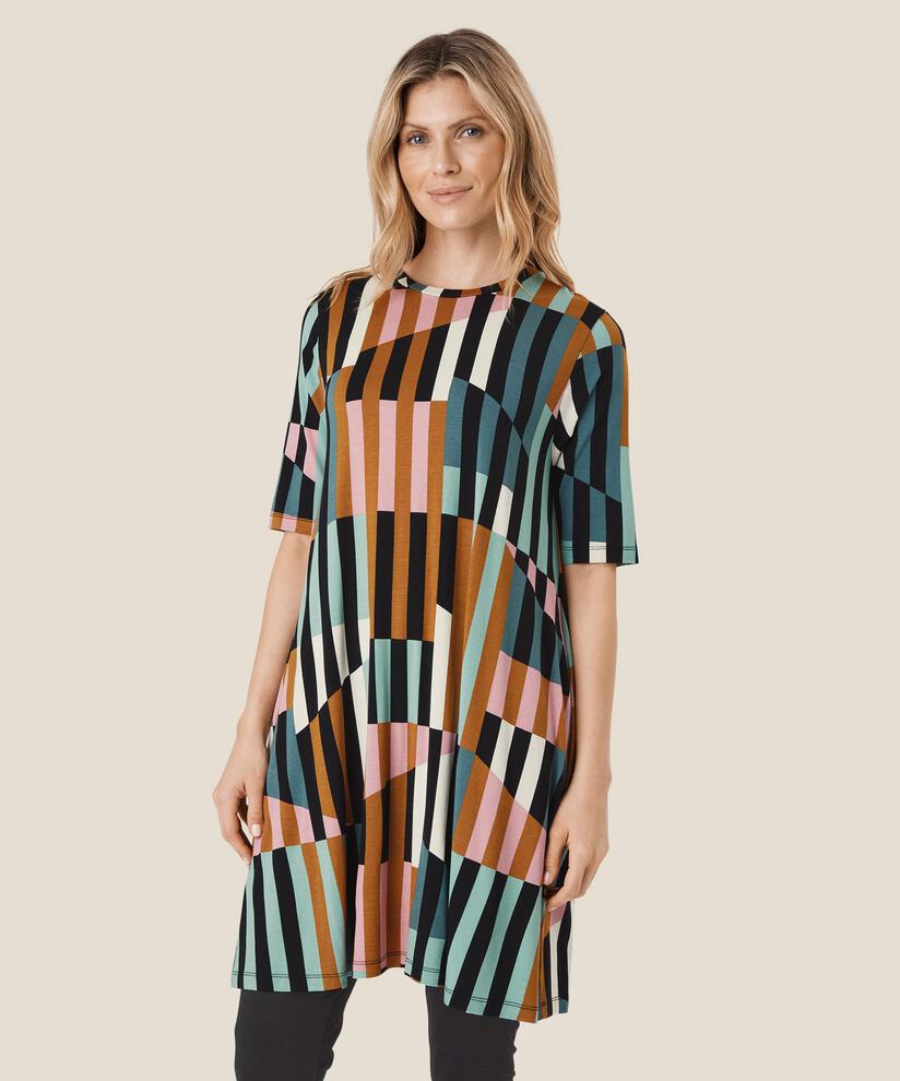 De flotte pastelfarvede striber på denne tunika kan ikke undgå at få smilet frem.